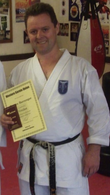 Just after being awarded 4th dan black belt by the Western Karate Union.